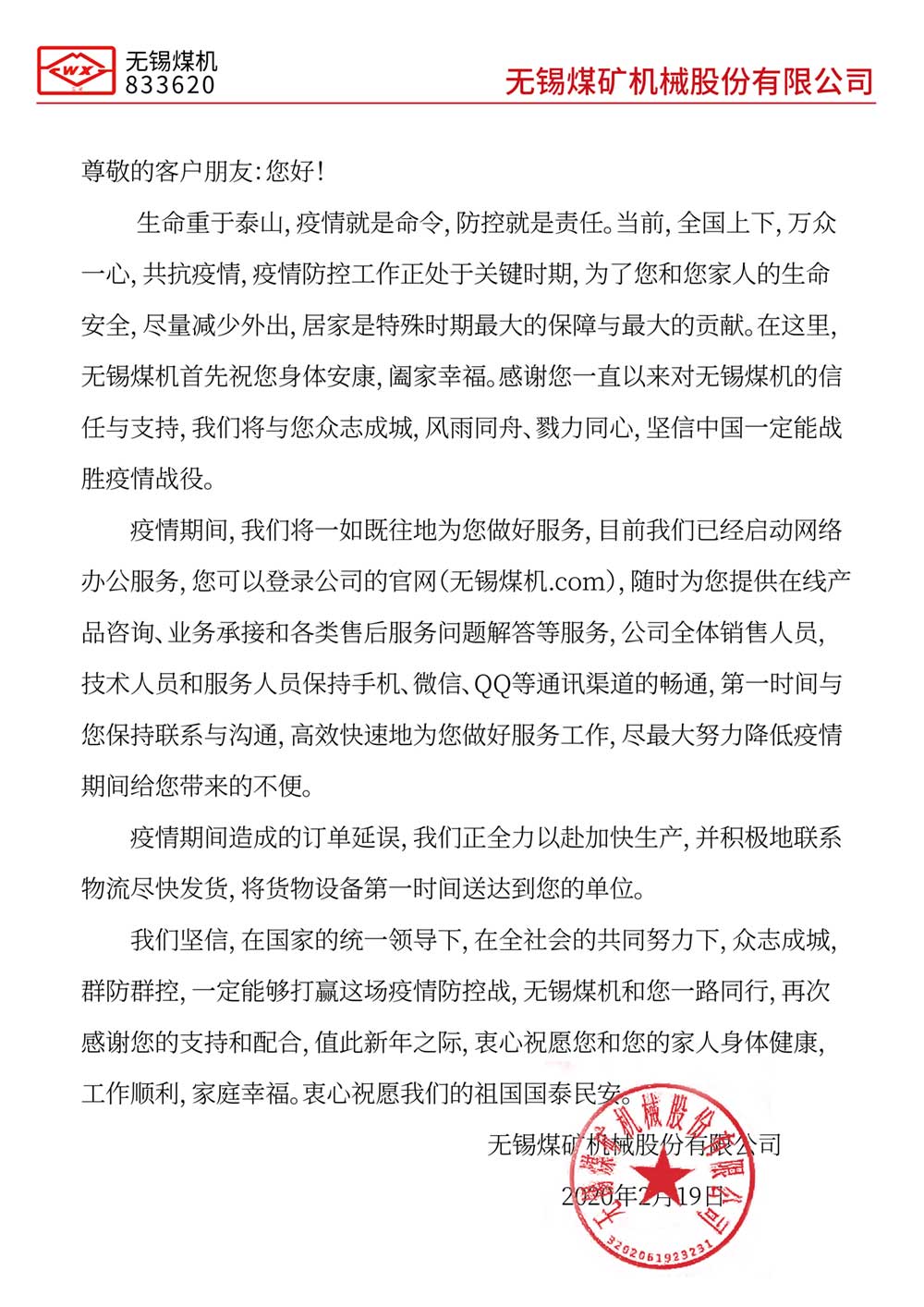 我們與您同在,眾志成城 - 無錫煤機